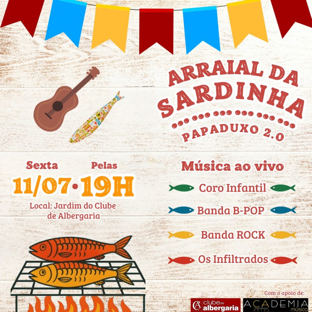 O Jardim do Clube de Albergaria (CA) vai ser palco de uma noite de festa e tradição na próxima sexta-feira, dia 11 de julho, a partir das 19h, com a realização do “Arraial da Sardinha” promovido pela Academia de Música do CA . O evento promete animar a cidade com muita música ao vivo, boa disposição e, claro, as tradicionais sardinhas assadas.