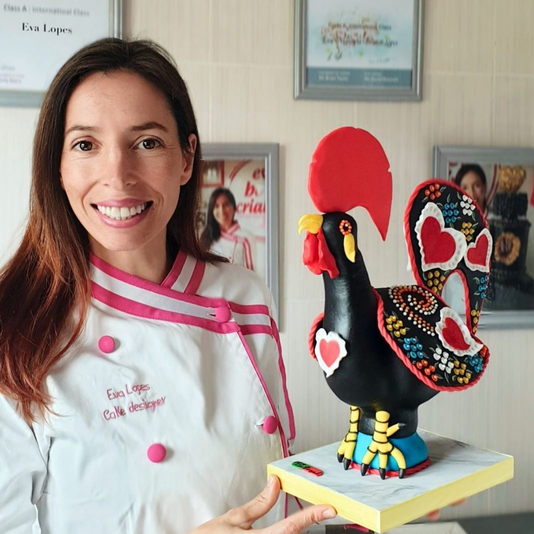 Eva Lopes, 36 anos, natural de Loure, foi distinguida num concurso internacional de decoração de bolos com a representação do famoso Galo de Barcelos.