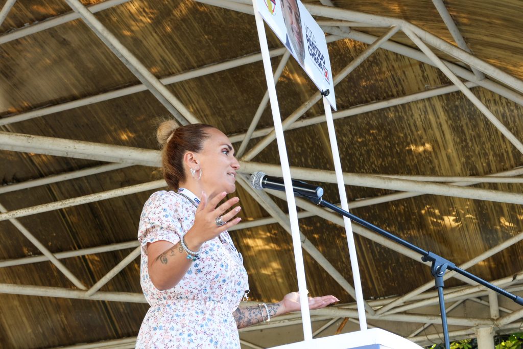 No momento mais aguardado da tarde, Sandra Damas, de 38 anos, apresentou-se à população. Natural de Albergaria-a-Velha, residente na freguesia da Branca há 25 anos, ex-bombeira voluntária e empresária, a candidata assumiu-se com “orgulho e responsabilidade” como cabeça de lista à Câmara Municipal. “Quero dar o melhor ao povo e lutar contra o sistema. Apresento-me à minha cidade com sentido de missão. Albergaria precisa de uma voz, Portugal precisa de uma voz, e essa voz somos nós, é André Ventura”, afirmou.