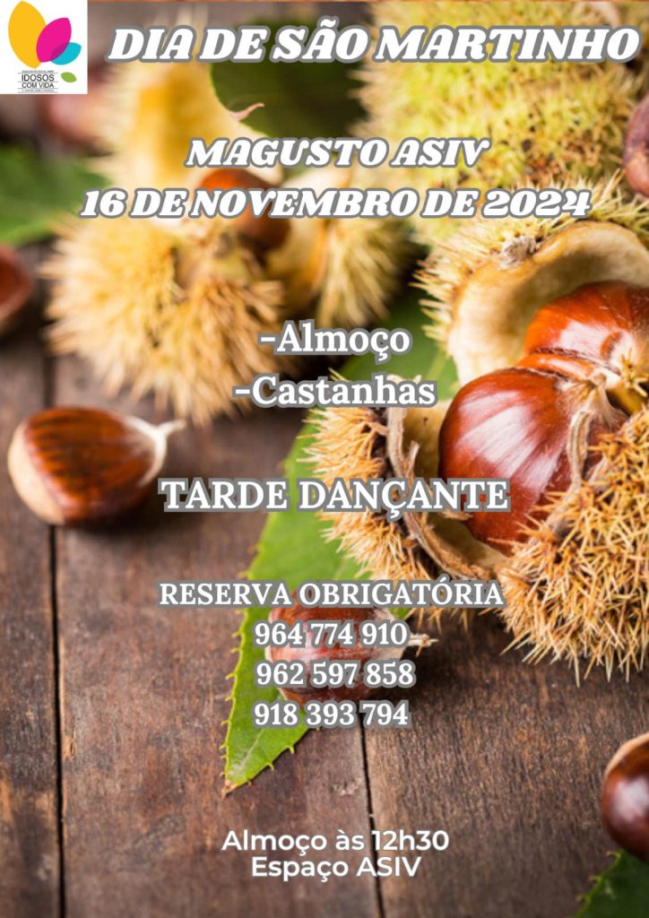 A Associação Social para Idosos com Vida prepara um almoço convívio acompanhado de uma Tarde Dançante regada de castanhas, às 12h, no espaço da ASIV. As inscrições para a festa intergeracional são feitas através dos contactos disponíveis em cartaz.