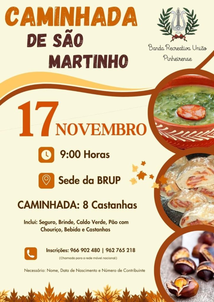 A Caminhada de São Martinho da Banda Recreativa União Pinheirense parte da sede da filarmónicas às 9h e termina com caldo-verde, pão com chouriço e castanhas.