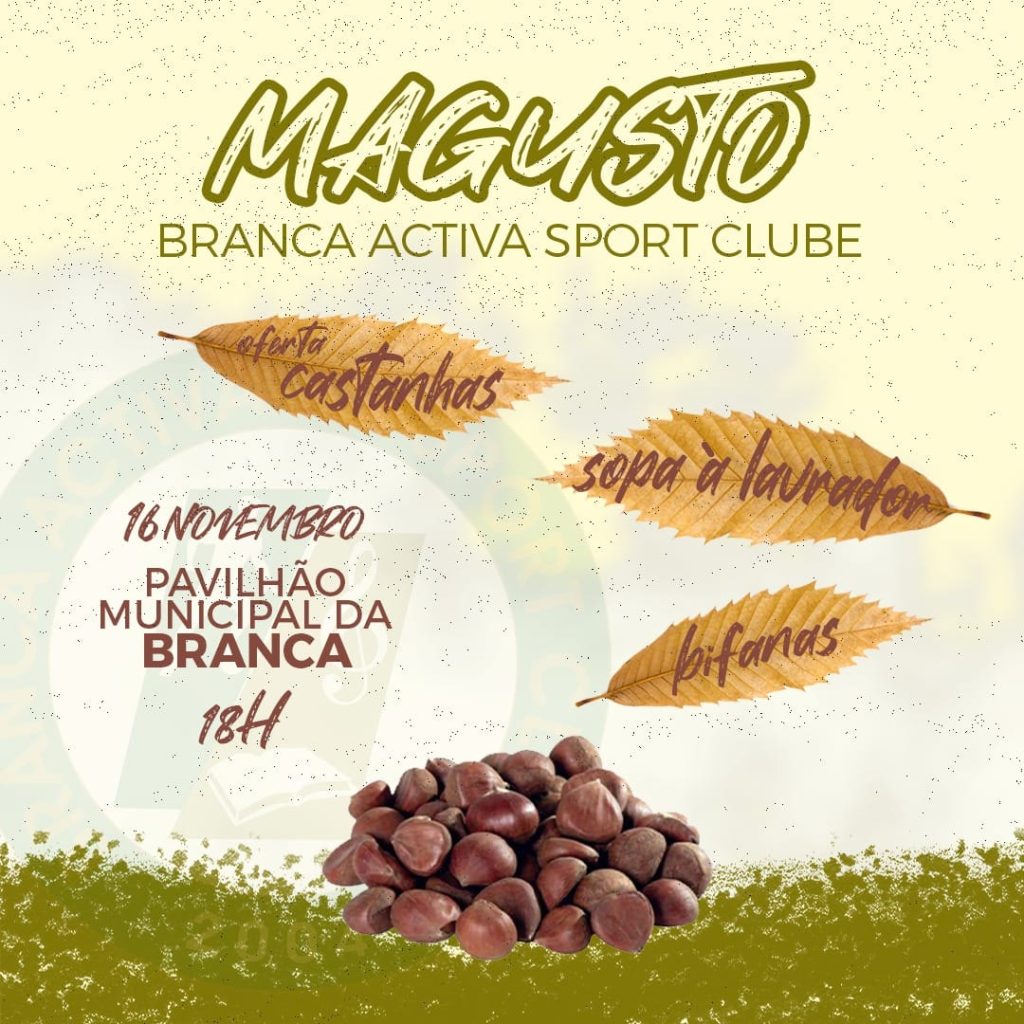 Sopa à lavrador, bifanas e a oferta de castanhas é a proposta do Branca Activa Sport Clube para celebrar São Martinho, a partir das 18h, no Pavilhão Municipal da Branca.