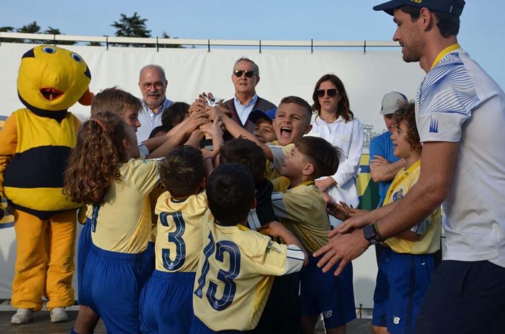 Antes da entrega de prémios, todos os participantes do Torneio Primavera juntaram-se no relvado para, à semelhança do ano anterior, elaborarem um gigante laço humano, em comemoração do mês de prevenção dos maus-tratos infantis, iniciativa promovida pela CPCJ.