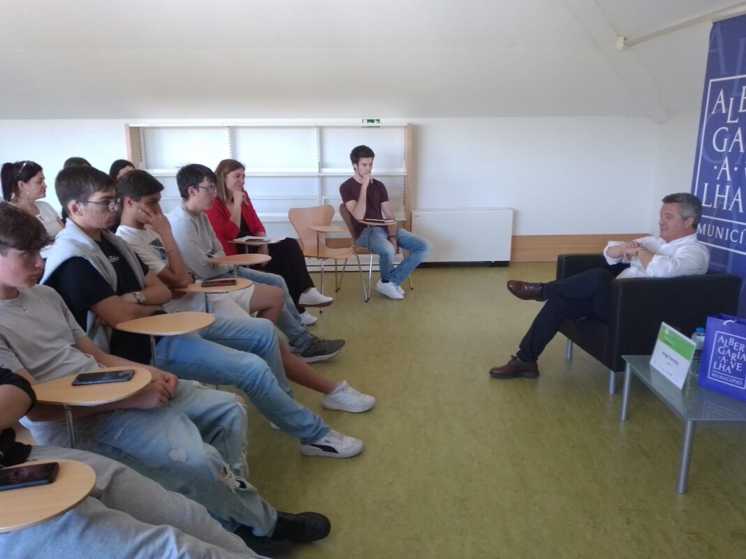 Perante uma plateia de jovens do Ensino Secundário, o empresário Jorge Ferreira, diretor executivo da Palbit, partilhou a sua história profissional, ao mesmo tempo que foi dando recomendações aos estudantes, no sentido de os sensibilizar para o mundo do empreendedorismo, com palavras motivadoras, sem ocultar as dificuldades e riscos.