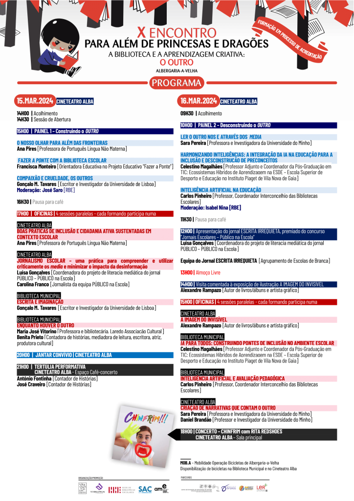 O Cineteatro Alba e a Biblioteca Municipal de Albergaria-a-Velha voltam a receber o momento de formação e partilha “Para Além de Princesas e Dragões: A Biblioteca e a Aprendizagem Criativa”, nos dias 15 e 16 de março.