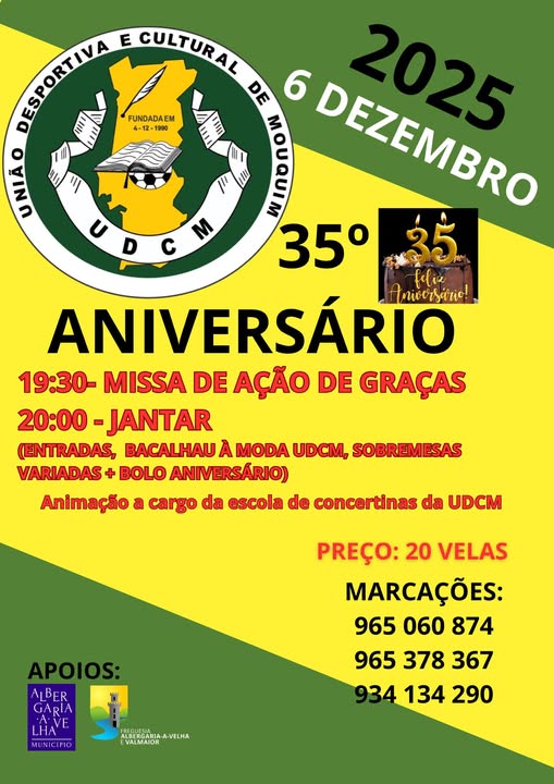 A UDCM – União Desportiva e Cultural de Mouquim celebra 35 anos de desporto, música, motas e tradição. A efeméride festeja-se na sede da coletividade, a partir das 19h30.