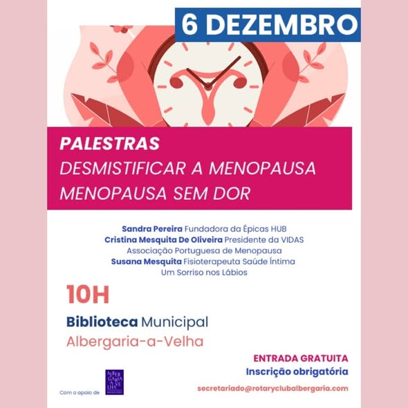 O Rotary Club de Albergaria-a-Velha dinamiza, às 10h, na Biblioteca Municipal, a sessão ‘Desmistificar a Menopausa: Menopausa sem dor’, um encontro gratuito e aberto a toda a população.