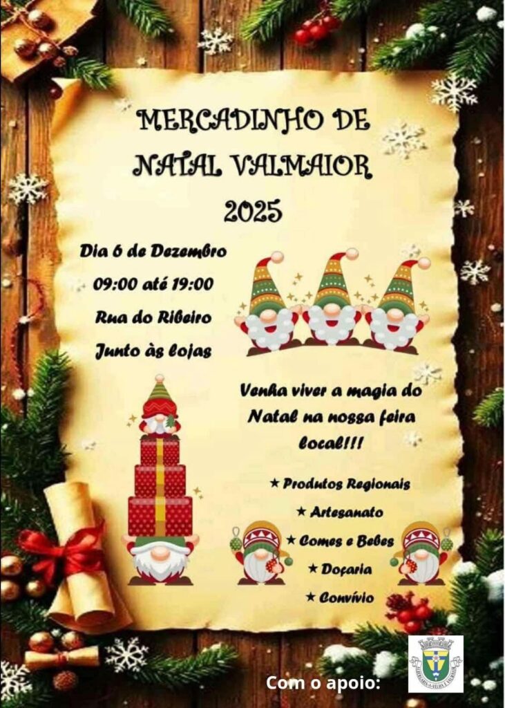Na Rua do Ribeiro, em Valmaior, empresários do pequeno comércio e coletividades locais juntam-se para um Mercado de Natal, aberto a todos das 9h às 19h.