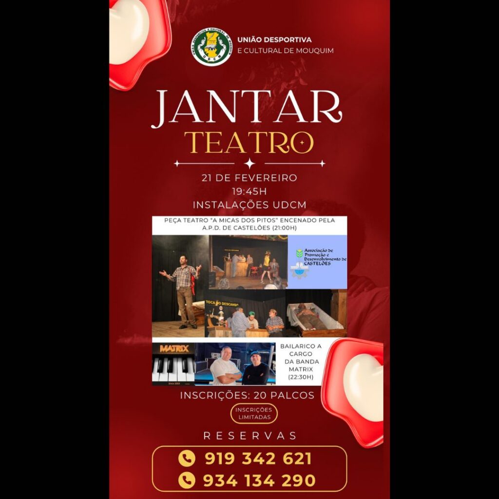 A União Desportiva e Cultural de Mouquim convida a comunidade para uma noite cheia de humor, música e convívio, no dia 21 de fevereiro.