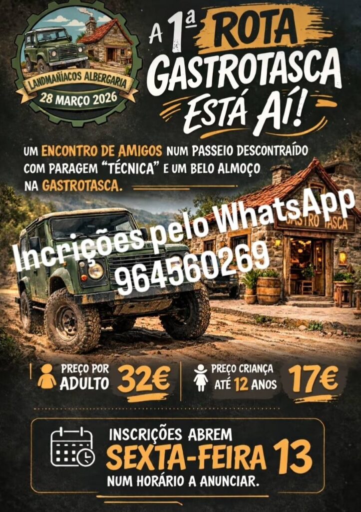 Os Landmaníacos de Albergaria apresentam a 1.ª Rota Gastronómica, que parte do Centro Grossista de Albergaria-a-Velha, na Zona Industrial, às 9h. O encontro promete juntar convívio, aventura e gastronomia num só evento.
