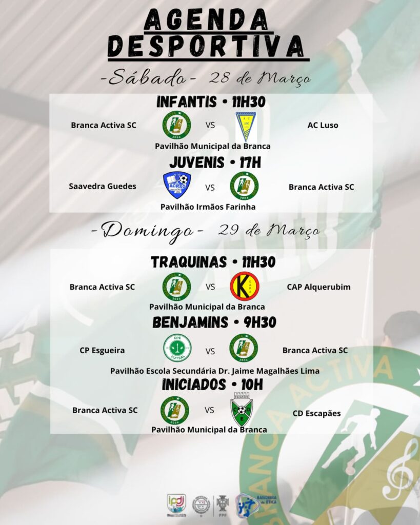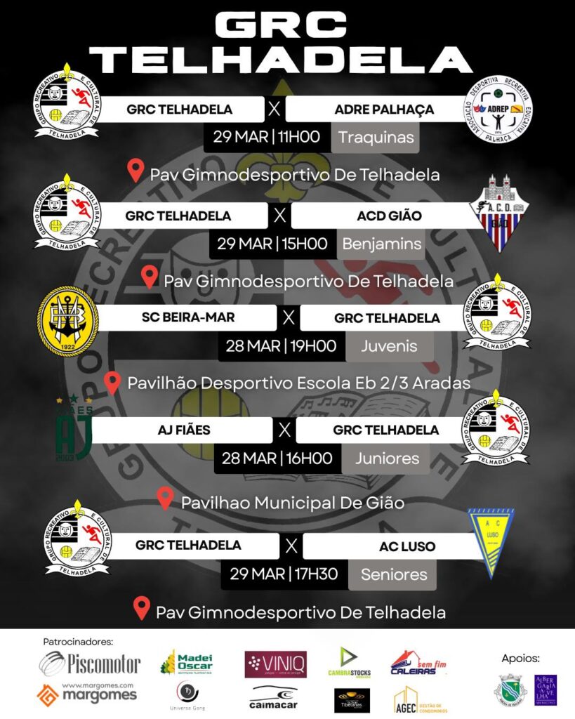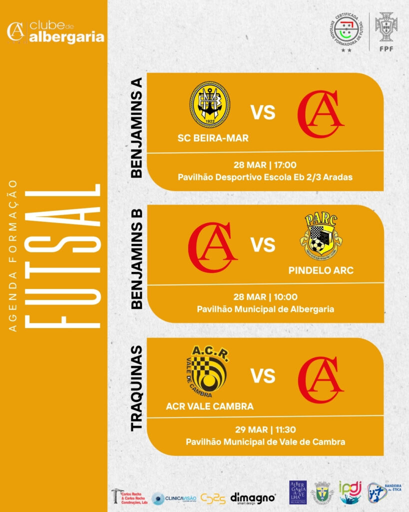 Confira o calendário das equipas da casa para o fim-de-semana que se avizinha: