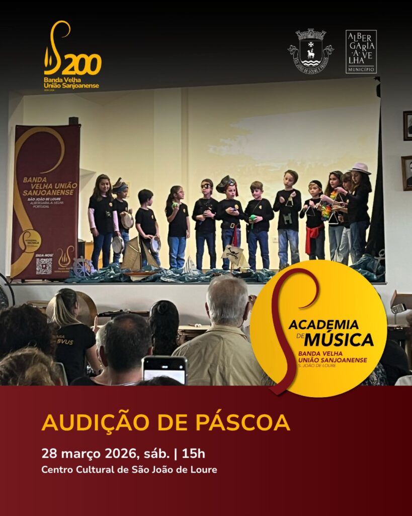 Os alunos da Academia de Música da Banda Velha União Sanjoanense sobem ao do Centro Cultural de São João de Loure, às 15h, para mostrar à comunidade o que têm vindo a aprender na filarmónica que celebra dois séculos este ano. A Audição da Academia é aberta ao público.
