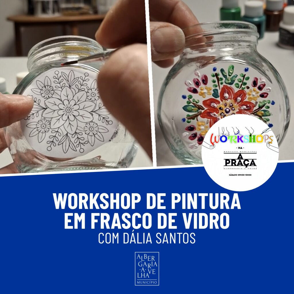 Dália Santos leva ao Mercado Municipal ‘A Praça’ um workshop pintura em frasco de vidro. A aula prática arranca às 9h30, é gratuita e requer inscrição através do e-mail turismo@cm-albergaria.pt ou contactos 234 529 751 / 963 230 989.