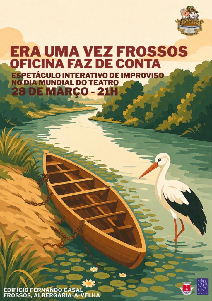 O Grupo de Teatro ‘A Bateira’ assinala o Dia Mundial do Teatro com “Era uma vez Frossos – Oficina Faz de Conta”, uma proposta de teatro de improviso que convida o público a entrar em cena e a fazer parte da história. A iniciativa decorre, pelas 21h, na sede d’A Bateira, Edifício Fernando Casal, em Frossos.