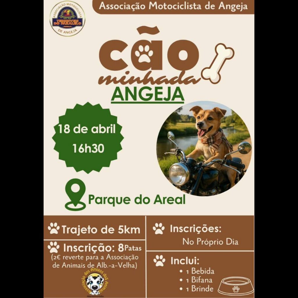 A Associação Motociclista ‘Terríveis Paralelo’ prepara uma “Cãominhada” no Parque do Areal, em Angeja, com arranque pelas 16h30. As inscrições podem ser efetuadas no próprio dia, no local do evento.