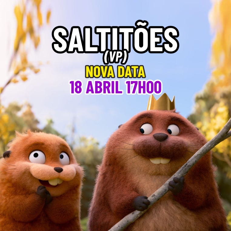 O filme ‘Saltitões’, que estava previsto para exibição no dia 29 de março, não foi apresentado devido a constrangimentos técnicos. A sessão foi reagendada para sábado, às 17h, mantendo-se válidos os bilhetes já adquiridos.