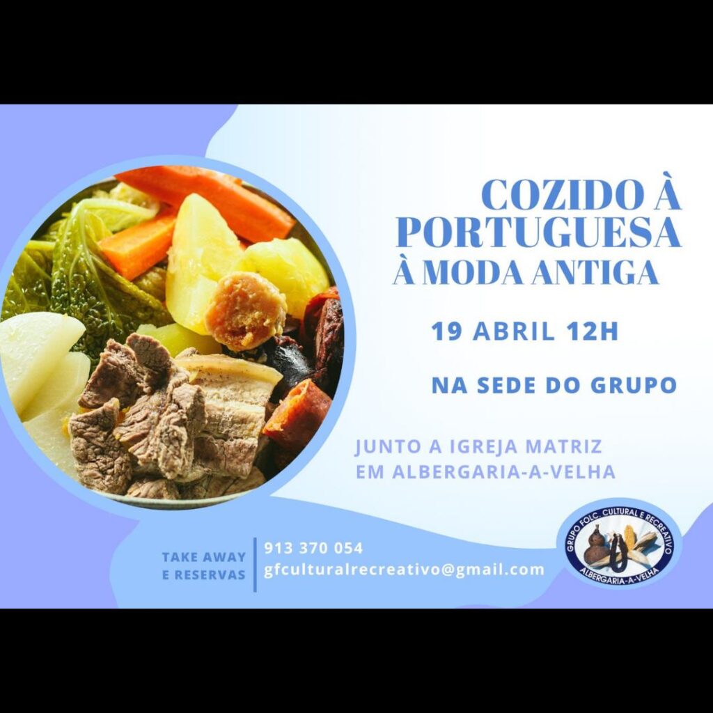 O Grupo Folclórico Cultural e Recreativo de Albergaria-a-Velha convida a comunidade a saborear o genuíno Cozido à Portuguesa à Moda Antiga, a partir das 12h, na sede do grupo.