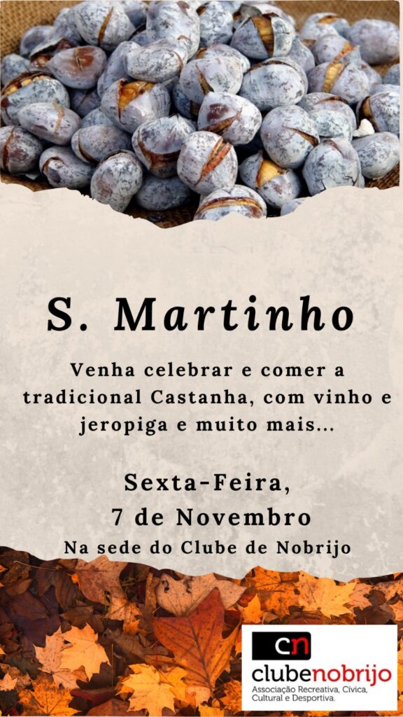 7 de novembro – São Martinho Clube de Nobrijo – a acontecer na sede do clube, na freguesia da Branca, o Clube de Nobrijo convida amigos e simpatizantes para comer as castanhas assadas com um copo de jeropiga pelas 19h.