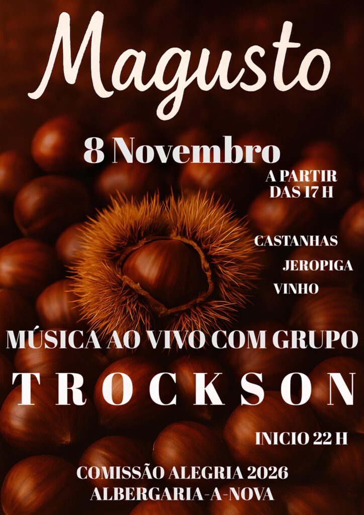 8 de novembro – Magusto da Comissão Alegria – A Comissão de Festas da Alegria de 2026 está a preparar a festa de Albergaria-a-Nova. Para angariar fundos em honra à santidade a comissão convida a comunidade para um convívio de música ao vivo, muitas castanhas vinho e jeropiga pelas 17h