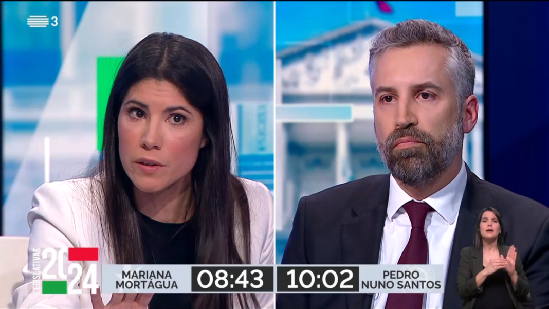 Pedro Nuno Santos, secretário-geral do Partido Socialista (PS), e Mariana Mortágua, coordenadora do Bloco de Esquerda (BE), estiveram frente a frente, no debate de ontem, às 20h30, na RTP.