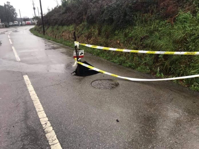 No passado sábado, na Estrada Real, em Albergaria-a-Nova, perto da ponte do IC2 abriu-se uma cratera junto a uma tampa de saneamento.