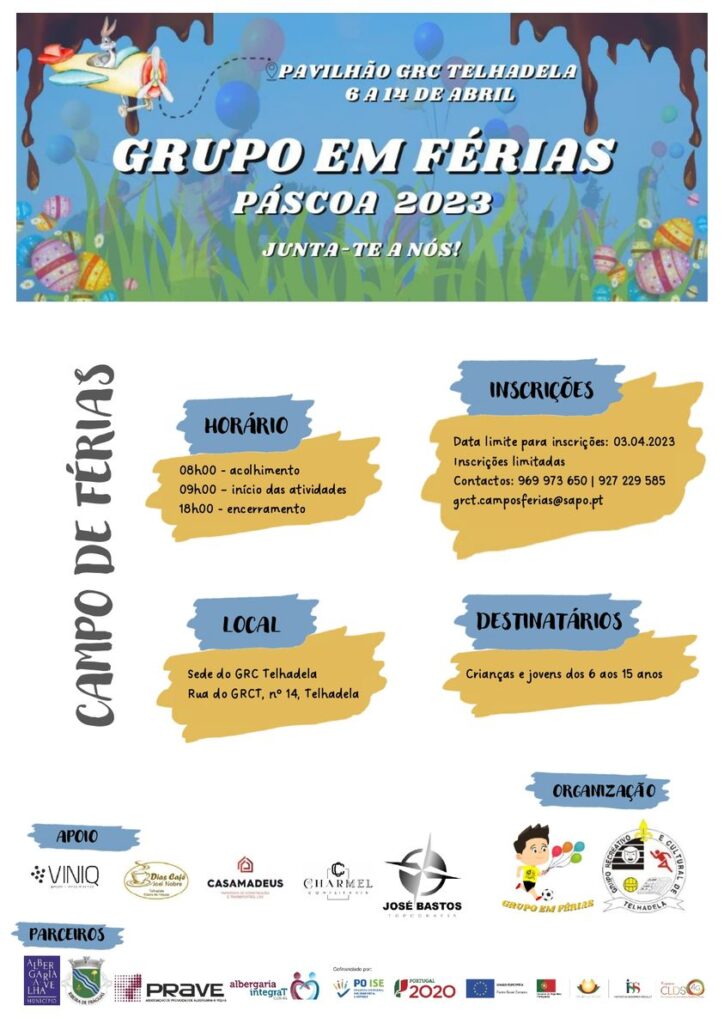 O Grupo Recreativo Cultural de Telhadela (GRCT) vai promover, de 6 a 14 de abril, nas férias da Páscoa, a sua primeira iniciativa como Entidade Organizadora de Campos de Férias.