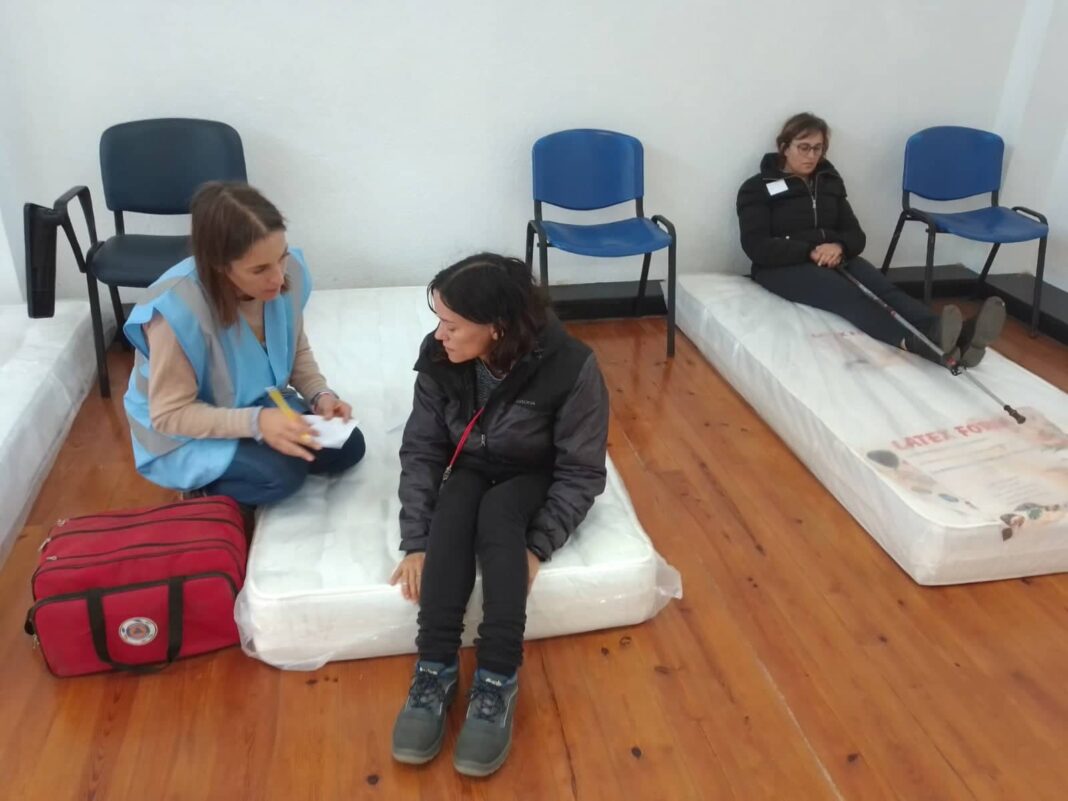 Os exercícios de simulação, coordenados por Bruno Vaz, da Equipa de Apoio Psicossocial, e Sandra Alves, chefe de divisão de Segurança, Saúde, Estatuto Social da Direção Nacional de Bombeiros, começaram pela repartição de tarefas. Uns elementos foram destacados para o posto de comando, outros para a equipa técnica que recebe e acode à população, e outros cumprem o papel de figurantes, representando a população acolhida.