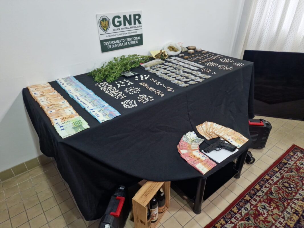 Além de 600 doses de haxixe, 320 doses de cocaína, 210 doses de heroína e 87 doses de canábis, foram também apreendidos 25 mil euros em numerário, 120 ml de metadona, uma estufa, quatro veículos (dois carros e duas motos), material de corte e de embalamento de produto estupefaciente, uma arma de “airsoft” e diverso equipamento furtado, como maquinaria industrial e material informático.